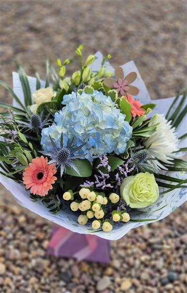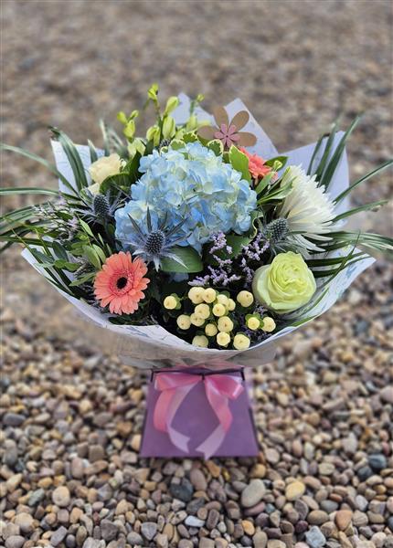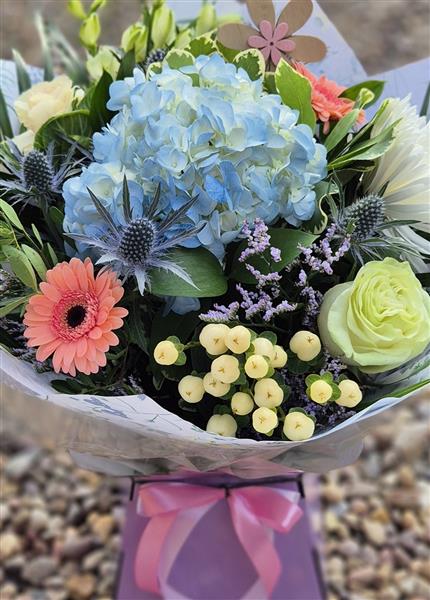 This flower arrangement is aqua packed delivered in water for instant display