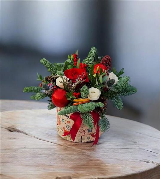 Our Christmas Cheer is a box of everything Christmas, from orange slices, pine cones, berries and spruce ready to display.