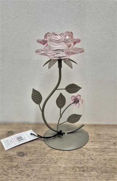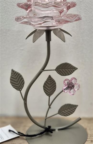 Pink Glass Rose Candle Holder